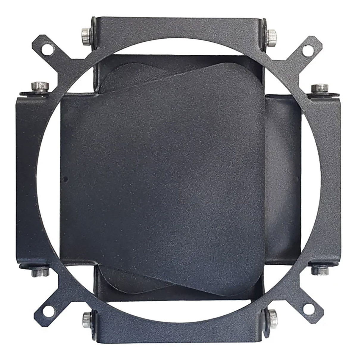 This Blizzard barndoor is designed to attach to the RokBox™ or SkyBox™ series par fixtures. It is installed with four included thumbscrews.
