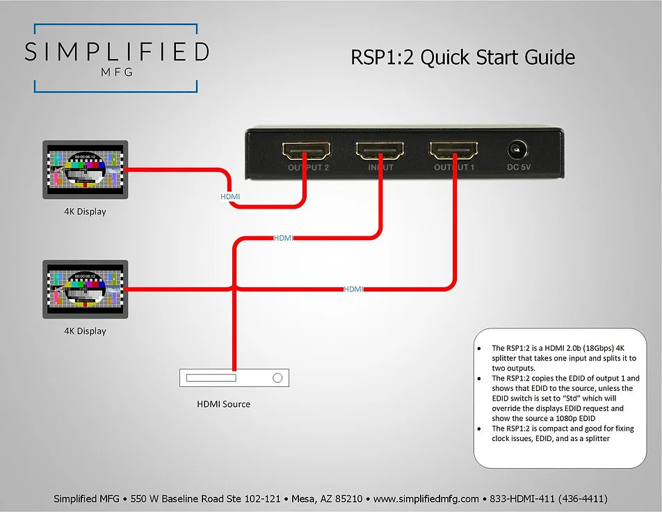 RSP1:2 HDMI 2.0b (18gbps) 1x2 HDMI Splitter
