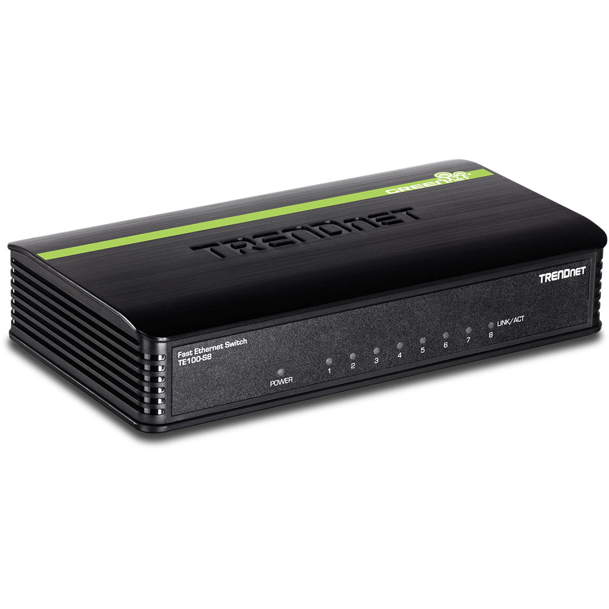 The compact 8-Port 10/100 Mbps GREENnet Switch, model TE100-S8, offers plug and play switching reliability and reduced power consumption. Embedded GREENnet technology reduced power consumption by up to 40% out of the box, with no management requirement. This switch offers speeds of up to 200 Mbps per port and total switching capacity of 1.6 Gbps.