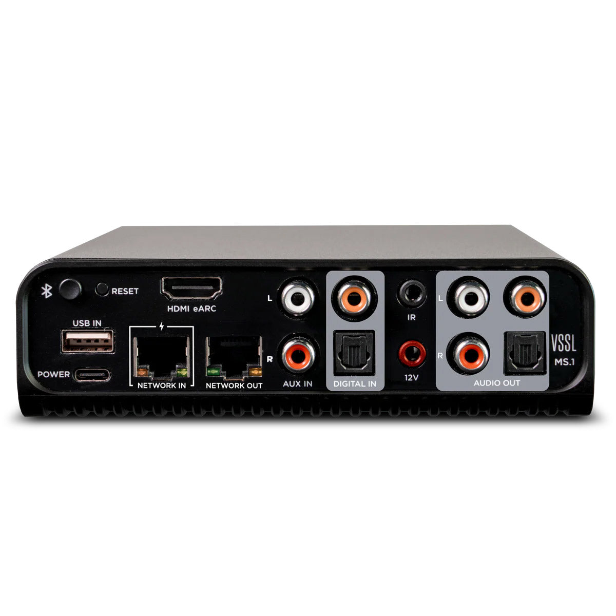 The VSSL MS.1 makes it easy to bring all your favorite music into any room. With WiFi and PoE for simple setup, the MS.1 delivers high-quality sound through the latest connection options including HDMI eARC, Wi-Fi 6, and Bluetooth LE Audio with Auracast.